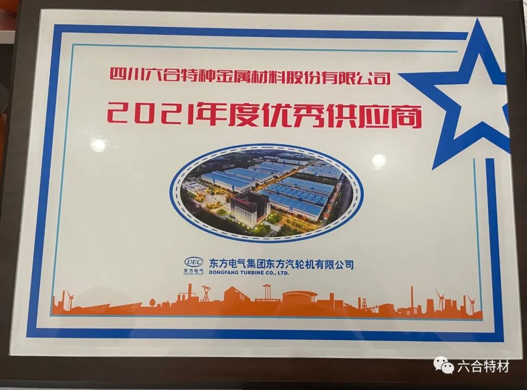 四川六合特種金屬材料股份有限公司憑借優(yōu)質(zhì)的產(chǎn)品、專業(yè)的服務、精細的管理、高效的指標成為東方電氣集團“2021年度優(yōu)秀供應商”。這既是對公司真誠服務客戶的肯定,更是對公司多年來嚴細管理的褒獎。