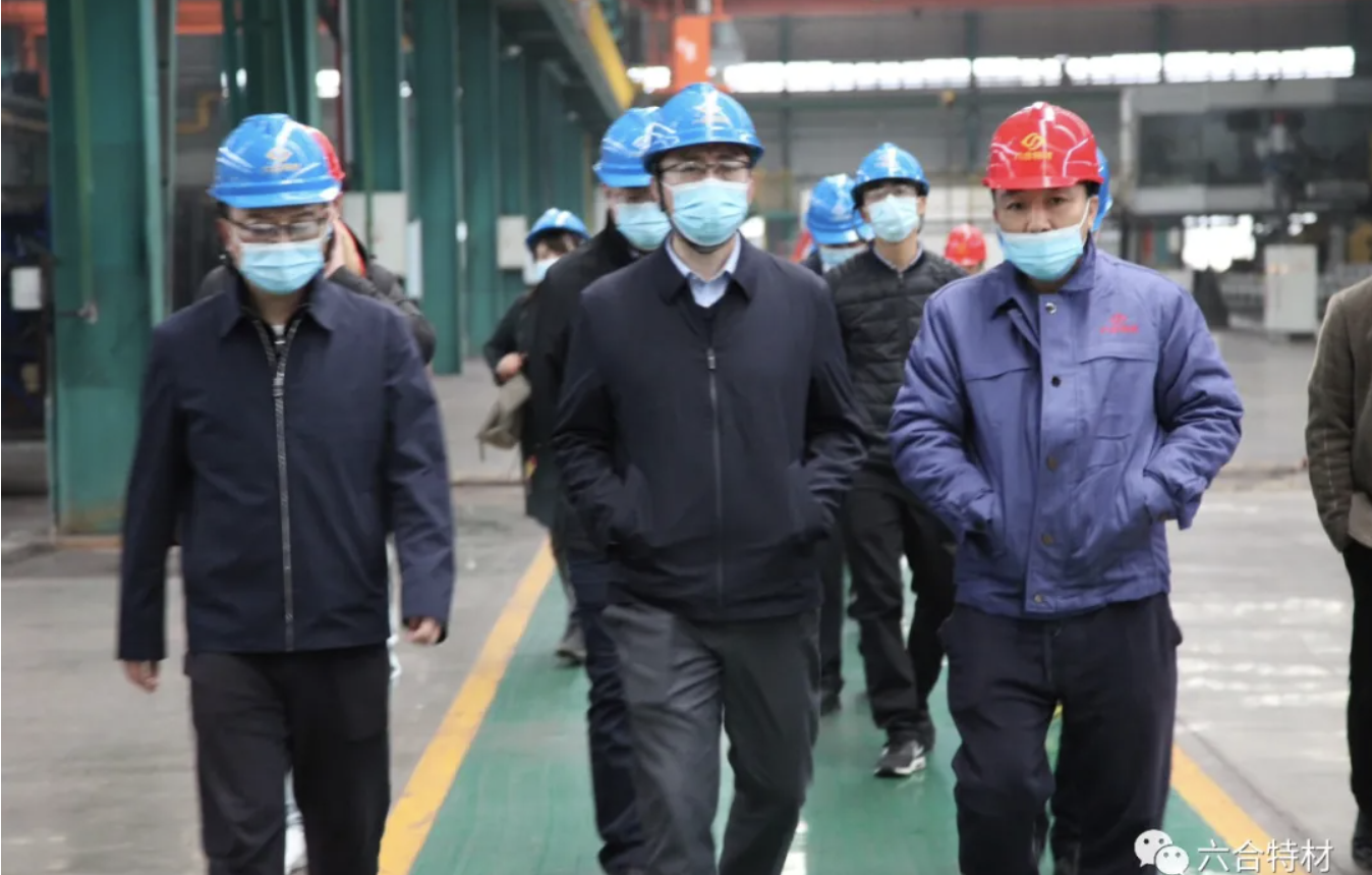 11月18日,綿陽市委常委黃朝陽赴六合特材調(diào)研企業(yè)生產(chǎn)經(jīng)營情況。江油市委副書記、市長曾建軍,江油高新區(qū)黨工委書記呂勇,江油市委常委、組織部部長張鈞風(fēng)參加調(diào)研。