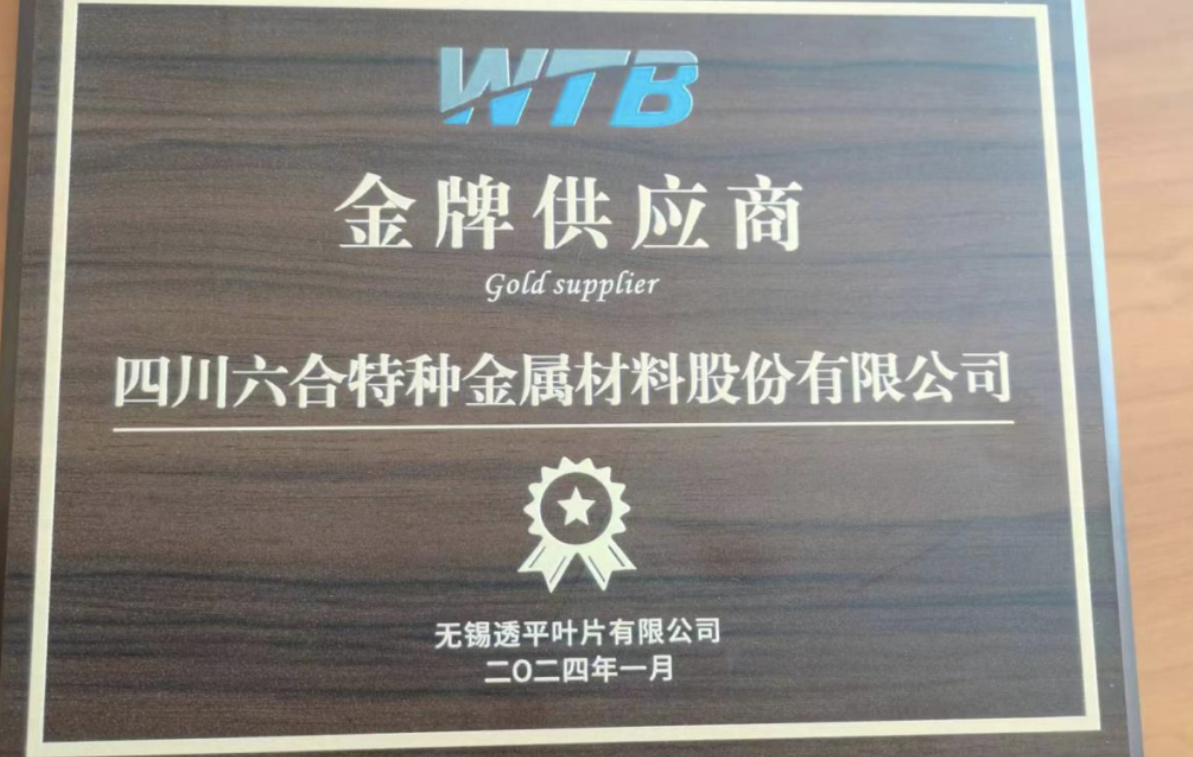 六合特材榮獲無(wú)錫透平葉片有限公司“金牌供應(yīng)商”