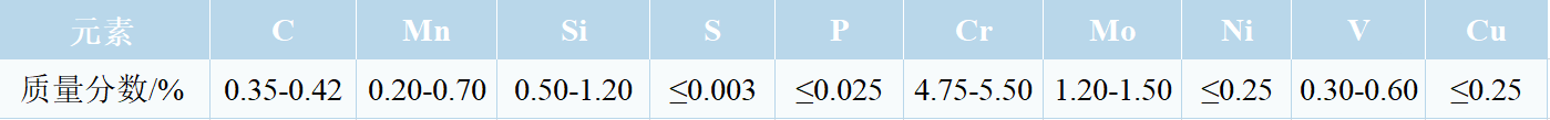 4Cr5MoSiV相當(dāng)于國外的H11鋼,有較強(qiáng)的二次硬化效應(yīng),屬高韌性熱穩(wěn)定性鋼,是國內(nèi)外應(yīng)用比較廣泛的 Cr-Mo-V 系熱作模具鋼之一。該鋼在在中溫(≤600 ℃)條件下具有優(yōu)良的強(qiáng)度、韌性、耐磨性、熱穩(wěn)定性以及抗冷熱疲勞性能等, 能有效抵抗溫度循環(huán)交變引起的熱疲勞裂紋的產(chǎn)生和擴(kuò)展,綜合性能優(yōu)異。