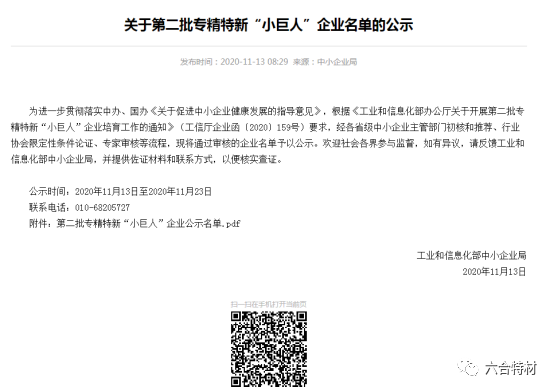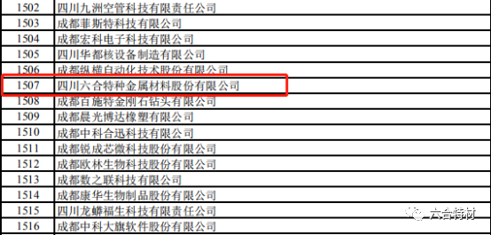 11月13日,工業(yè)和信息化部在官網(wǎng)公示了關于第二批專精特新“小巨人”企業(yè)名單,公示名單共1744家企業(yè),四川省占64家企業(yè),六合特材榜上有名。