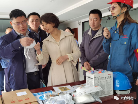 ? 在防護(hù)用品展示區(qū) 省領(lǐng)導(dǎo)認(rèn)真觀察公司是否為員工發(fā)放符合國家職業(yè)衛(wèi)生標(biāo)準(zhǔn)的個人防護(hù)用品