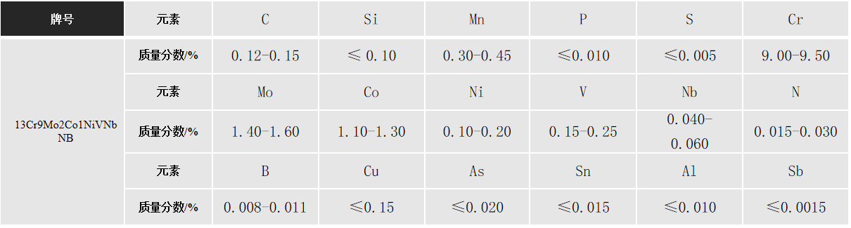 13Cr9Mo2Co1NiVNbNB屬于馬氏體耐熱鋼,其擁有較高的強(qiáng)度性能和良好的蠕變性能,為超超臨界汽輪機(jī)蒸汽溫度超過(guò)620℃對(duì)高強(qiáng)度耐熱鋼有更高的要求研制開(kāi)發(fā)出來(lái)的,用于超超臨界機(jī)組的中高壓轉(zhuǎn)子等關(guān)鍵部件。