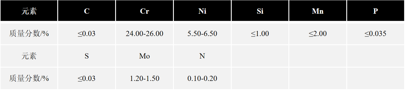 022Cr25Ni6Mo2N屬于雙相不銹鋼,它是在0Cr26Ni5Mo2 鋼基礎(chǔ)上調(diào)高鉬含量、調(diào)低碳含量、添加氮得到的,其具有高強(qiáng)度、耐氯化物應(yīng)力腐蝕、可焊接等特點(diǎn)。主要應(yīng)用于化工-化肥-石油化工等工業(yè)領(lǐng)域,主要制作熱交換器、蒸發(fā)器等