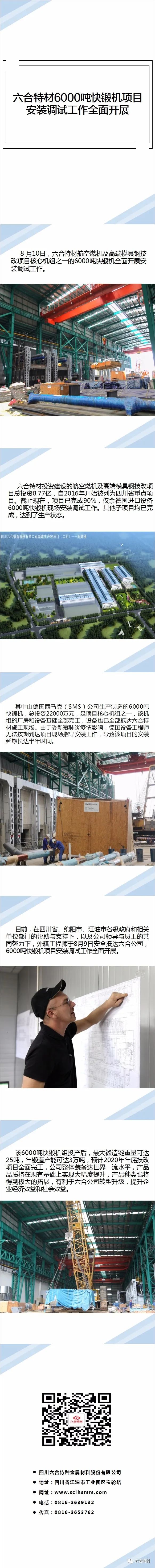 8 月10日,六合特材航空燃機(jī)及高端模具鋼技改項(xiàng)目核心機(jī)組之一的6000噸快鍛機(jī)全面開(kāi)展安裝調(diào)試工作。