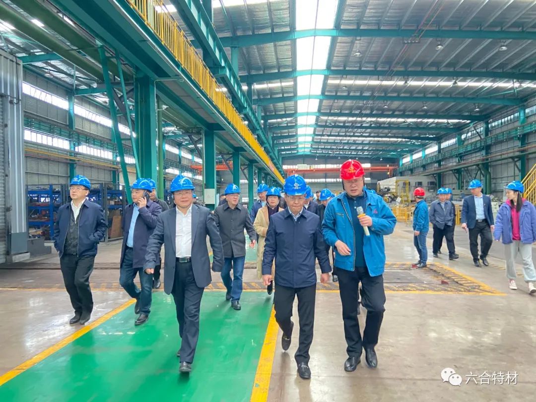 六合特材行政總監(jiān)陳鏡代表六合特材對蘭勁一行的到來表示熱烈歡迎,并向調(diào)研領(lǐng)導(dǎo)介紹了公司生產(chǎn)經(jīng)營情況及公司技改項目建設(shè)情況。隨后,蘭勁一行深入六合特材生產(chǎn)廠區(qū)進行調(diào)研,參觀了快鍛機車間及連軋車間,蘭勁對六合特材近年來圍繞國家重大裝備配套進行升級轉(zhuǎn)型,完成8.7億元航空、燃機項目建設(shè)表示稱贊,同時,對六合特材立足特種金屬材料研發(fā)生產(chǎn)為國家重大裝備制造提供強有力支撐表示贊賞和肯定。