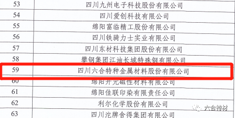 日前,四川省經(jīng)濟(jì)和信息化廳公布了《關(guān)于四川省制造業(yè)“貢嘎培優(yōu)”100戶(hù)企業(yè)名單》,四川六合特種金屬材料股份有限公司(以下簡(jiǎn)稱(chēng):六合特材)榜上有名。