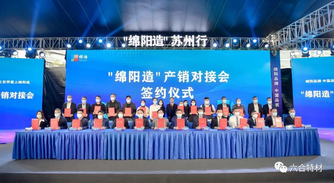 (11月2日,“綿陽(yáng)造”產(chǎn)銷(xiāo)對(duì)接會(huì)現(xiàn)場(chǎng)六合特材與“長(zhǎng)三角”企業(yè)簽約)