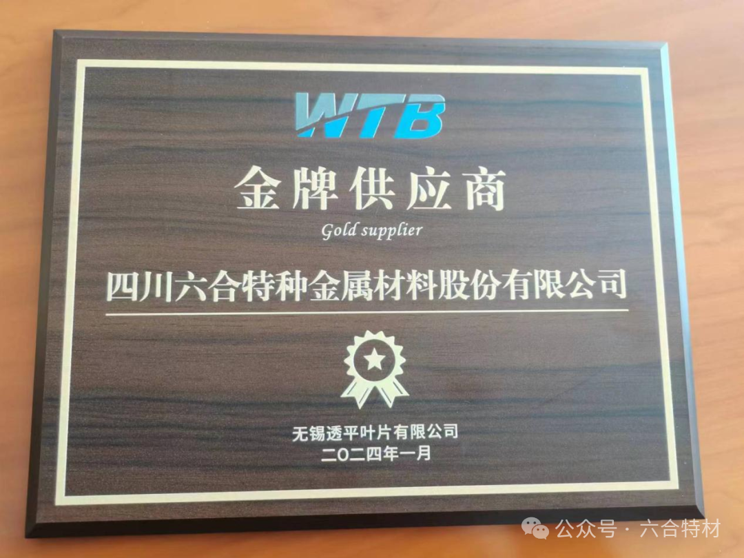 六合特材榮獲無錫透平葉片有限公司“金牌供應商”
