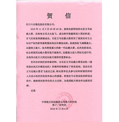 中國航天科技集團第六研究院賀信-六合產(chǎn)品應(yīng)用于長征五號運載火箭