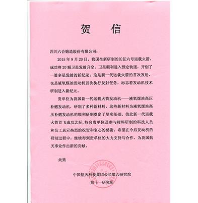中國航天科技集團第六研究院賀信-六合產(chǎn)品應(yīng)用于長征六號運載火箭