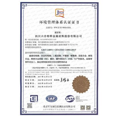 環(huán)境管理體系認(rèn)證證書